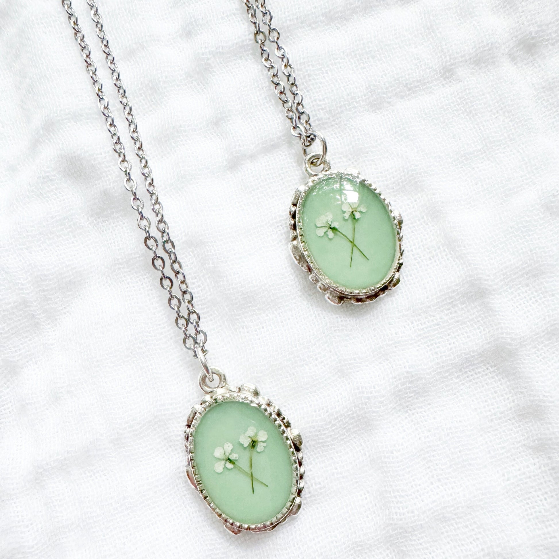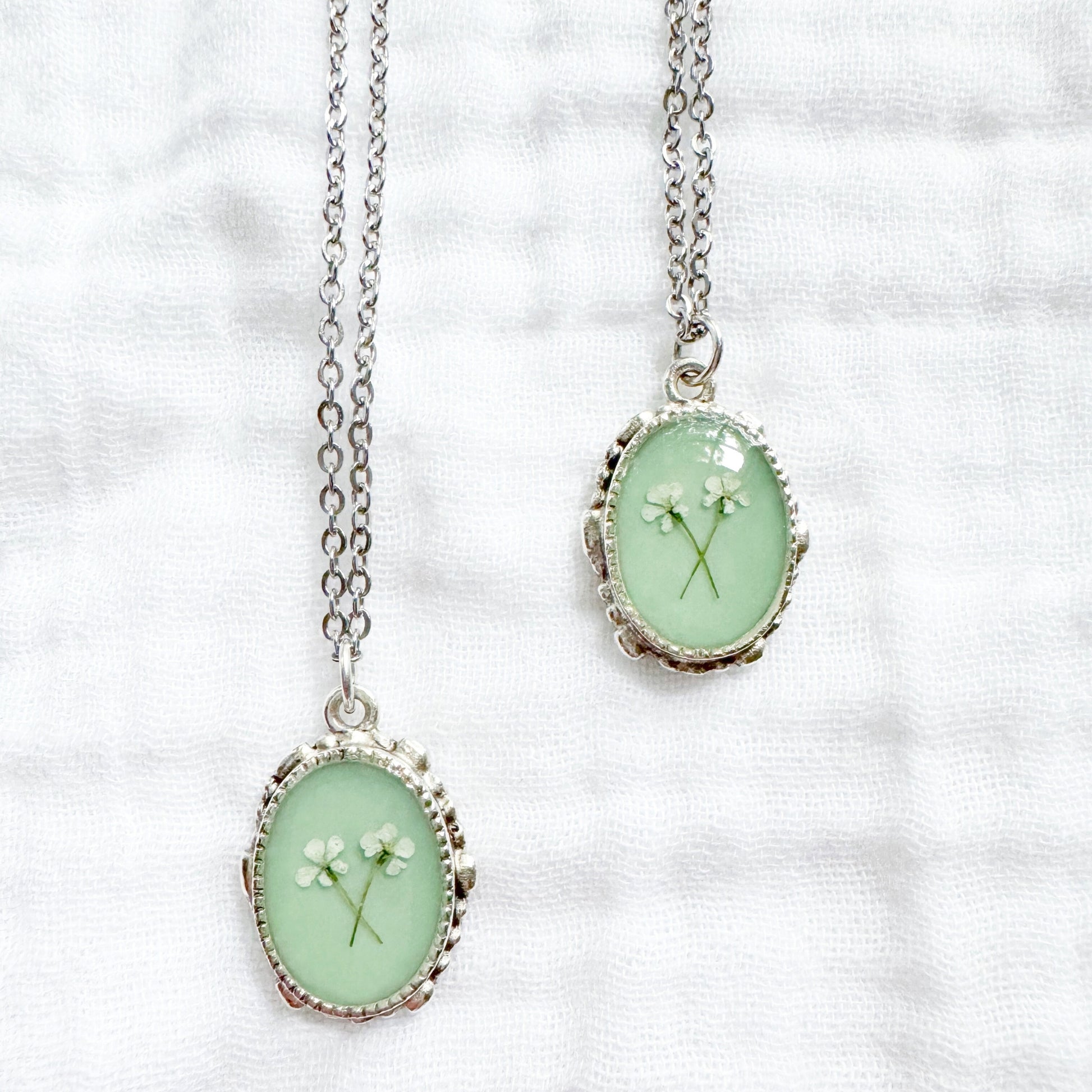 *Custom* Best Friends Ornate Pressed Flower Necklace | Silver