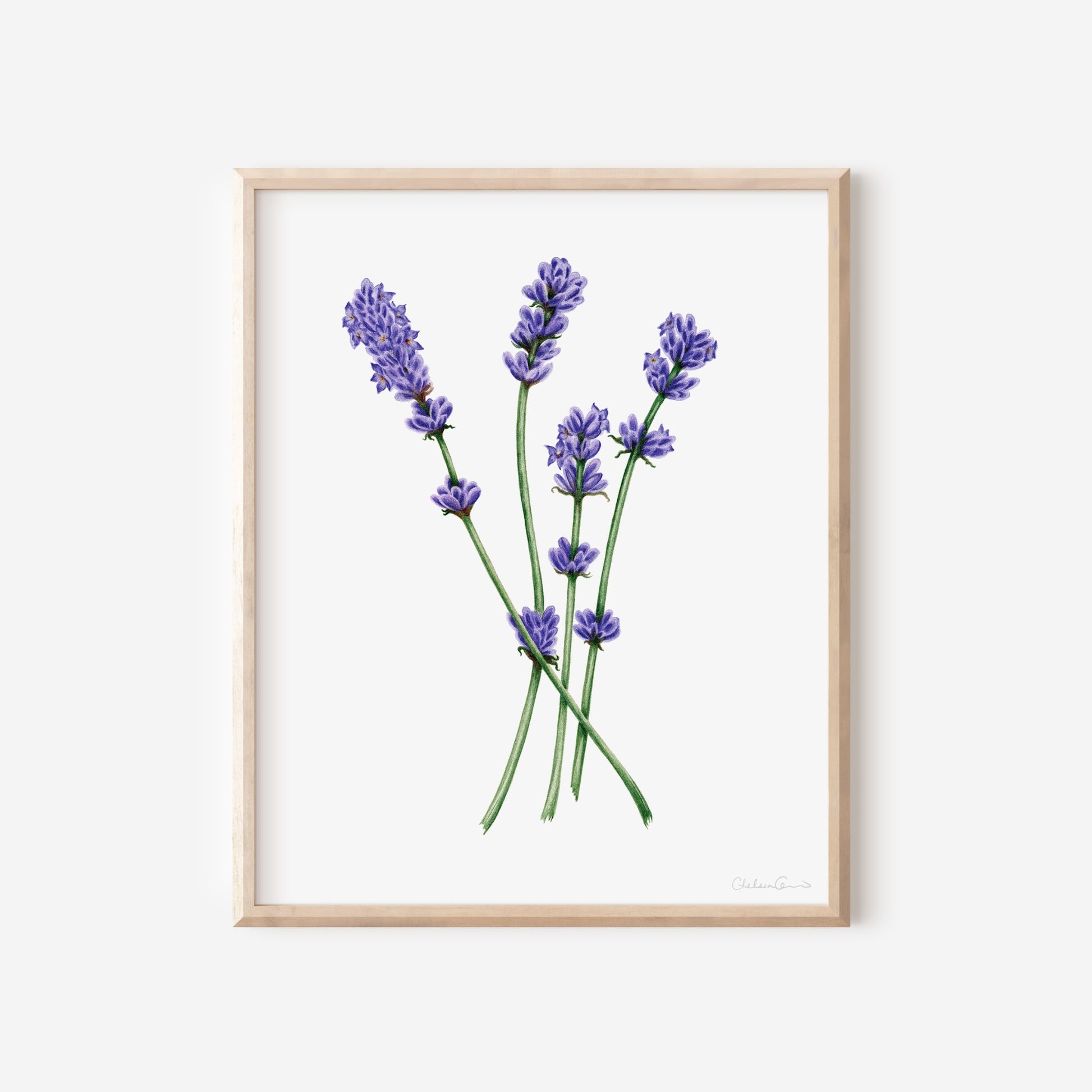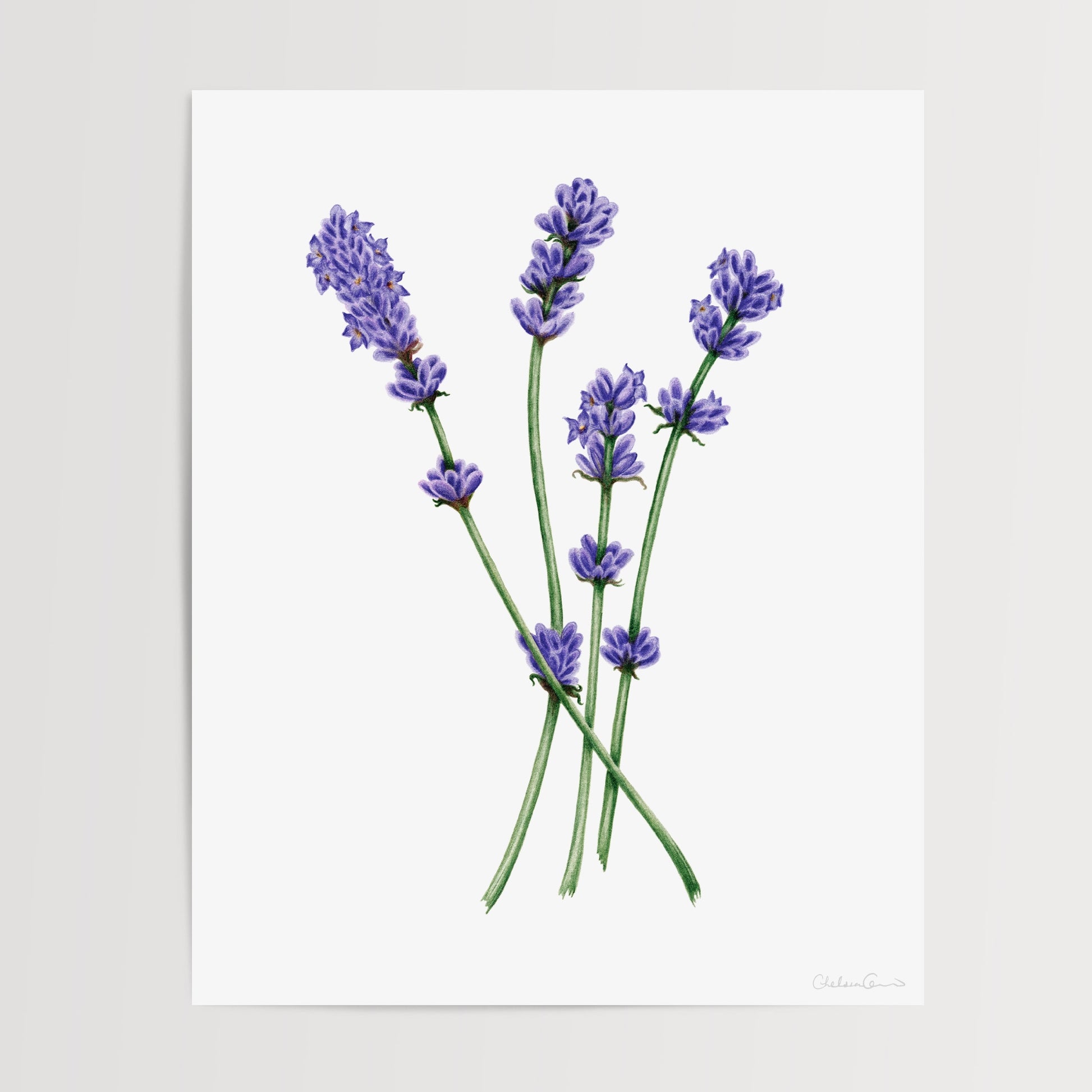 A beautiful botanical fine art print of an original English lavender flower illustration.