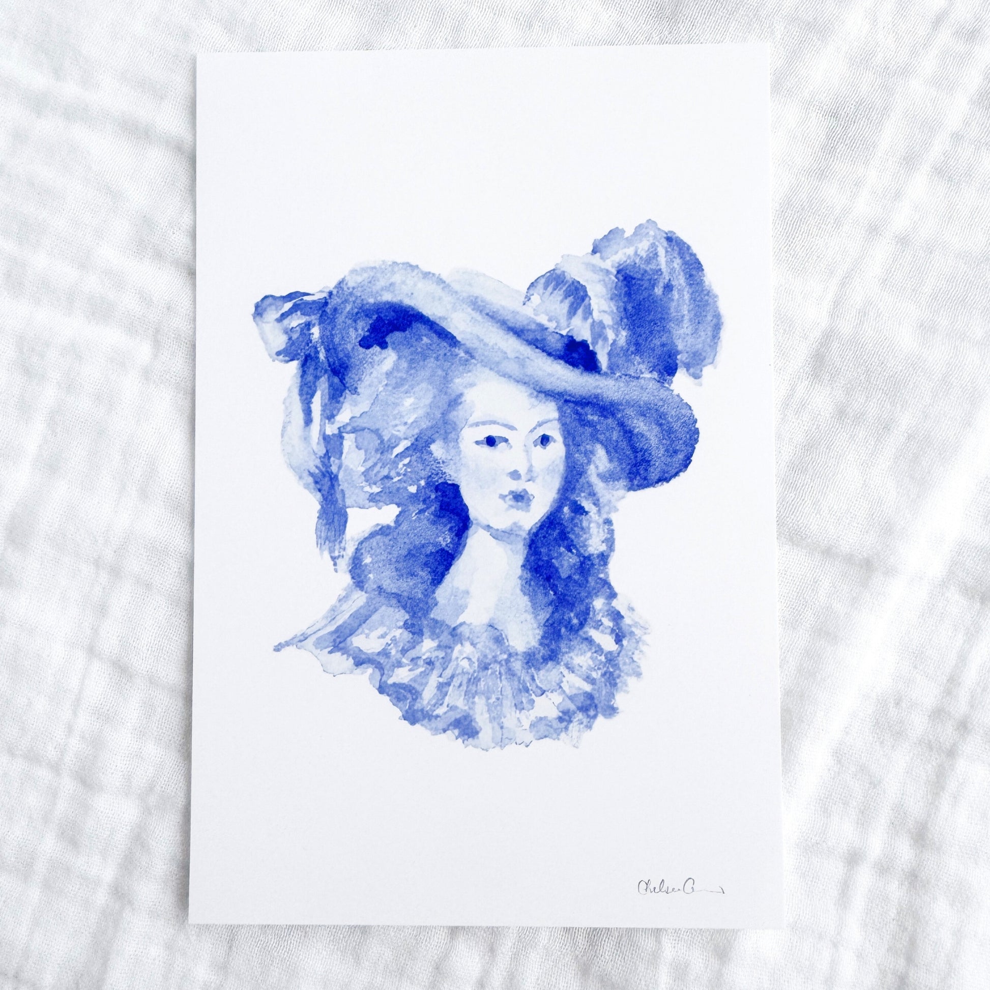 A beautiful watercolour fine art print of an original 18th century French lady painting.