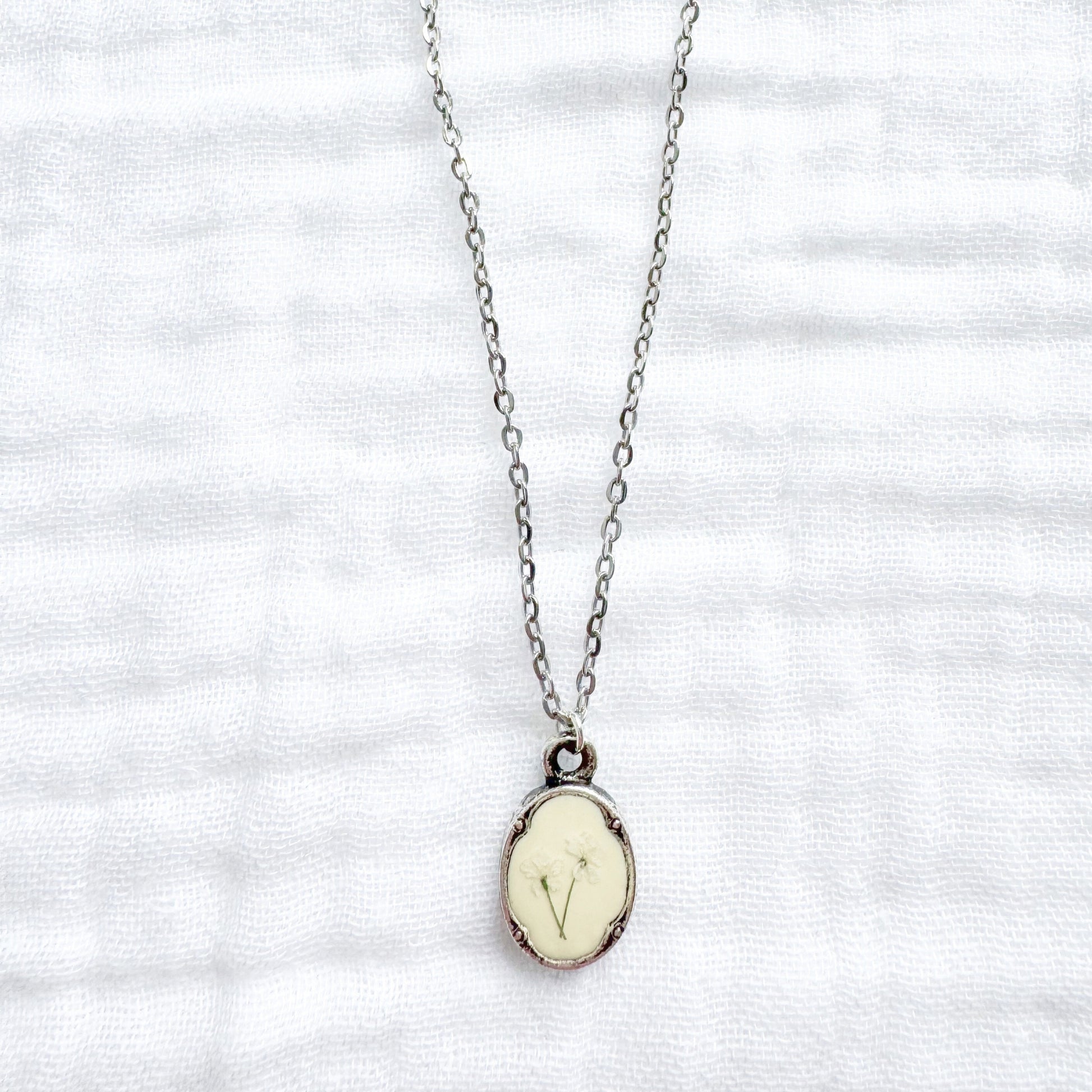 Joyce Mini Ornate Pressed Flower Necklace | Silver