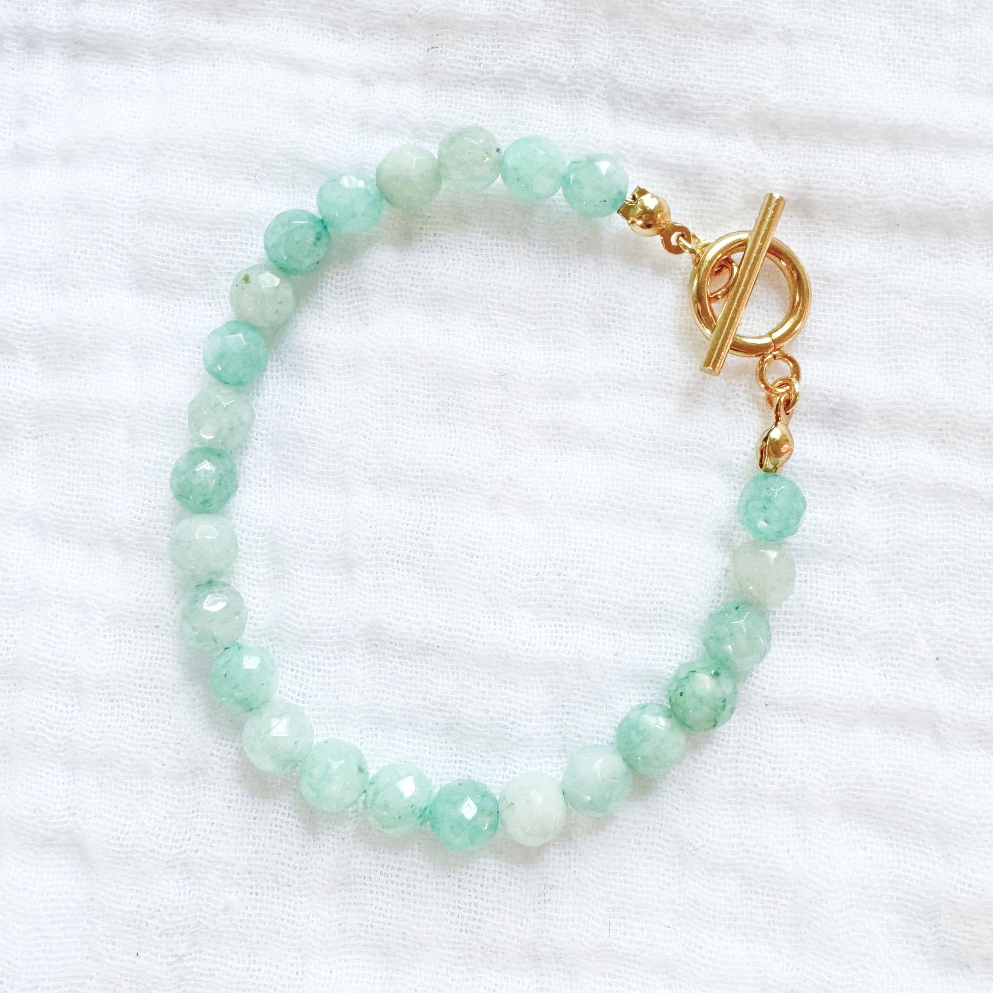 Wear the energy of the earth with this gorgeous gemstone bracelet. This shimmering piece features colour-enhanced aqua quartzite, a semi-precious stone known for strength and resilience.
