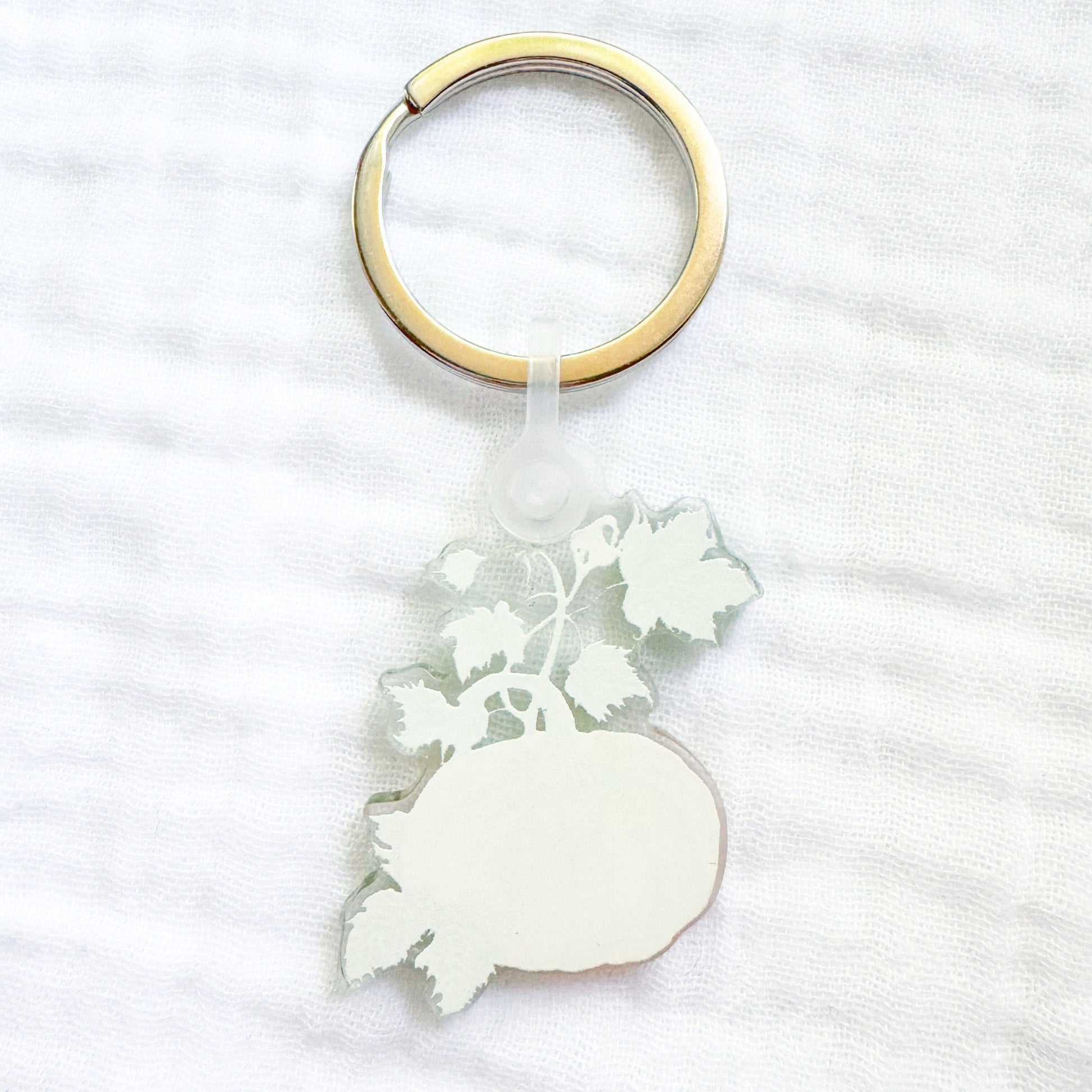 A beautiful acrylic keychain featuring a print of the original pumpkin botanical illustration.