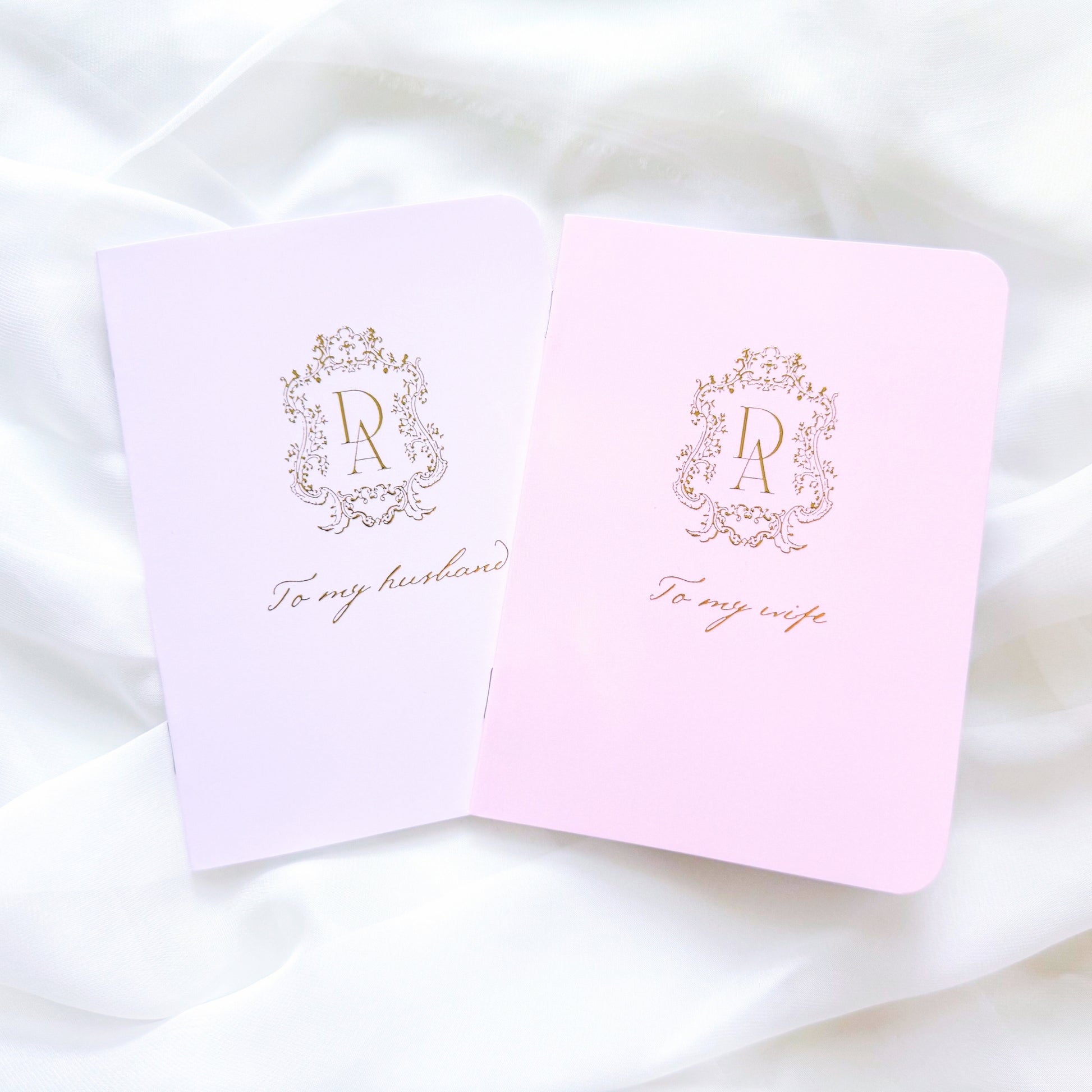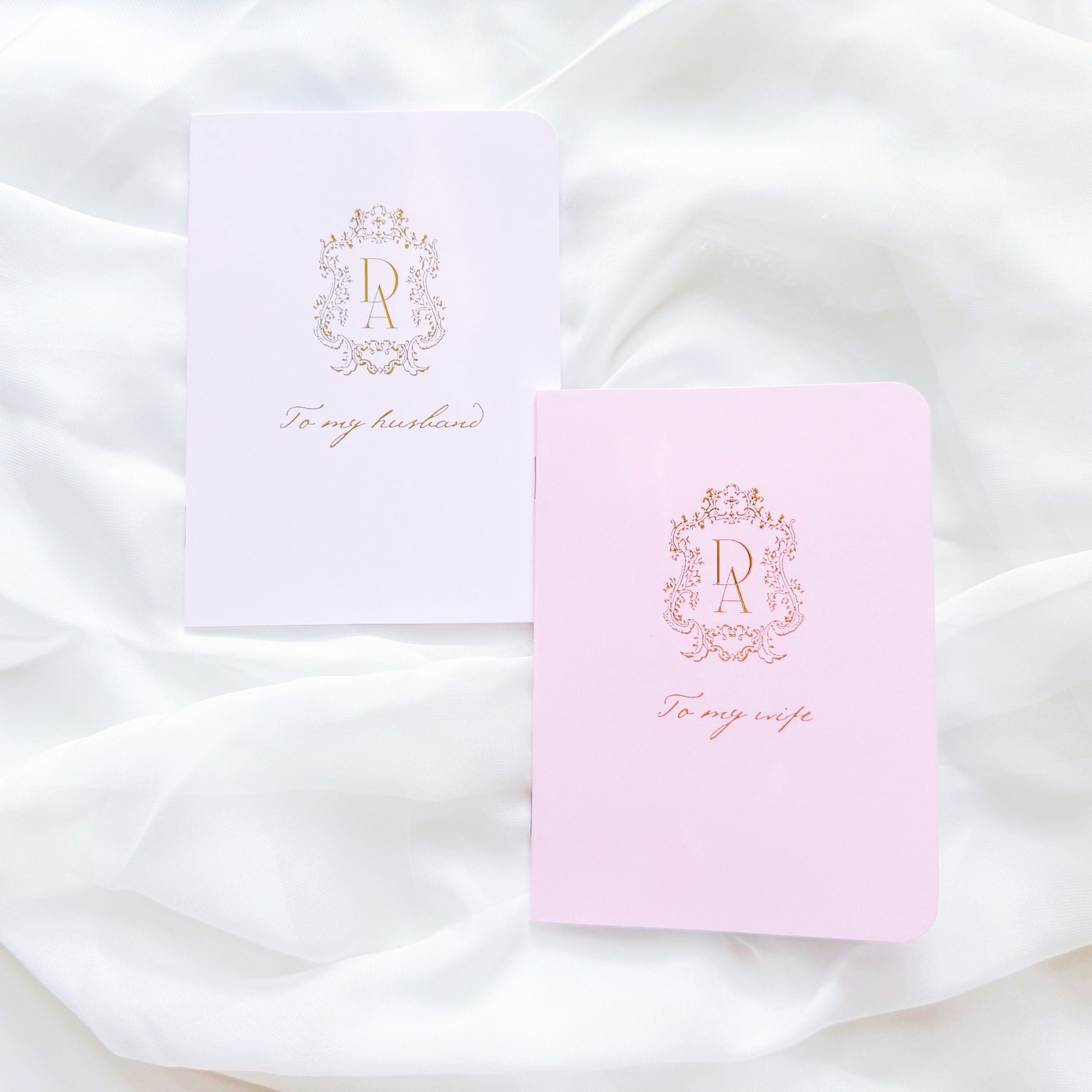 A gorgeous set of wedding vow books, available in basic and custom options. These keepsake notebooks will become treasured heirlooms to cherish for generations.